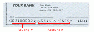 ABA Routing Numbers (First nine digit number on left hand bottom of your check):